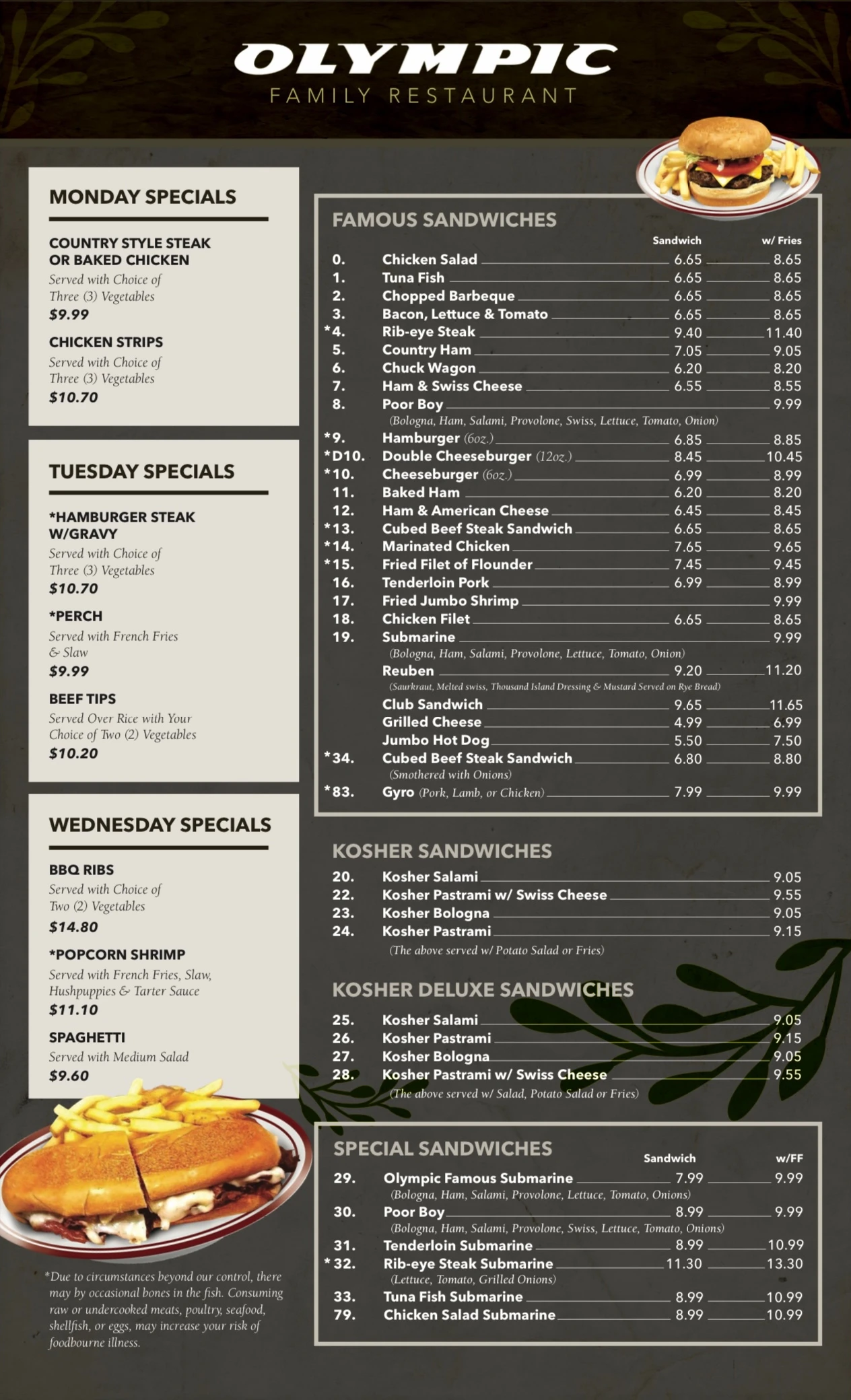 Menu Olympic Family Restaurant Menu